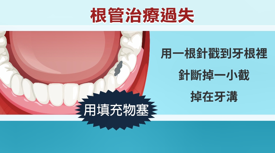事後女子氣不過,控告李姓牙醫過失傷害罪,牙醫否認根管治療有過失,認為斷針屬於醫療風險,台北地檢署認為,李姓男子沒有即時發現斷針,回診又不積極治療,已經依法起訴。