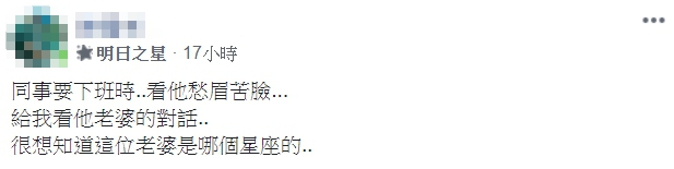 昨(22)日一位男網友在臉書社團《爆笑2公社》貼出數張對話截圖,原來他看到同事下班前突然愁眉苦臉,一問之下才發現夫妻倆為了晚餐吃什麼感到相當苦惱,看了同事與老婆互傳的訊息,原PO也瞬間傻眼,「很想知道這位老婆是哪個星座的」。