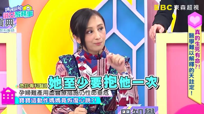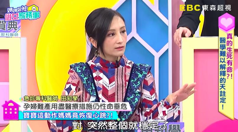 當老公把嬰兒車推到奄奄一息的妻子旁時,孩子突然嚎啕大哭,並開始本能性的要找奶吃,就在這時候,原本急救無效的產婦突然恢復心跳,讓現場所有醫師相當震驚,最後產婦順利救了回來,更神奇的是,她休養7天就出院,一年後便開始上班,田知學表示「第二年她是完整的,沒有任何神經學的症狀回去工作上班」,聽完故事,主持人佩甄和季芹都感動得落下眼淚,也讓人不禁讚嘆真的是「媽媽好神」。