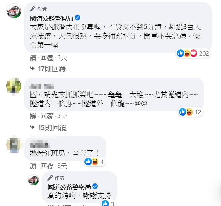 ▼臉書小編的神回覆引起網友討論,吸引了1萬多名網友按讚。(圖/翻攝自國道公路警察局)