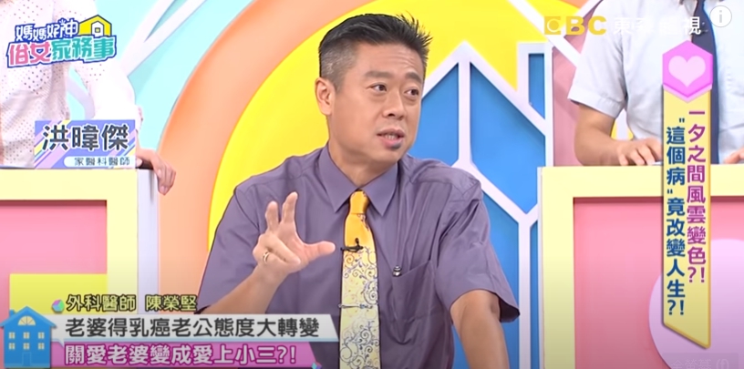 陳榮堅日前在節目《媽媽好神之俗女家務事》中,分享一個14年前的案例,一名50多歲的婦人和丈夫結婚多年,感情依舊甜蜜,兩人還合夥開餐廳,沒想到,某天婦人發現自己的乳房有硬塊,卻因為忙於生意,拖了整整一年才就醫檢查,而她也被醫師診斷為乳癌第三期。