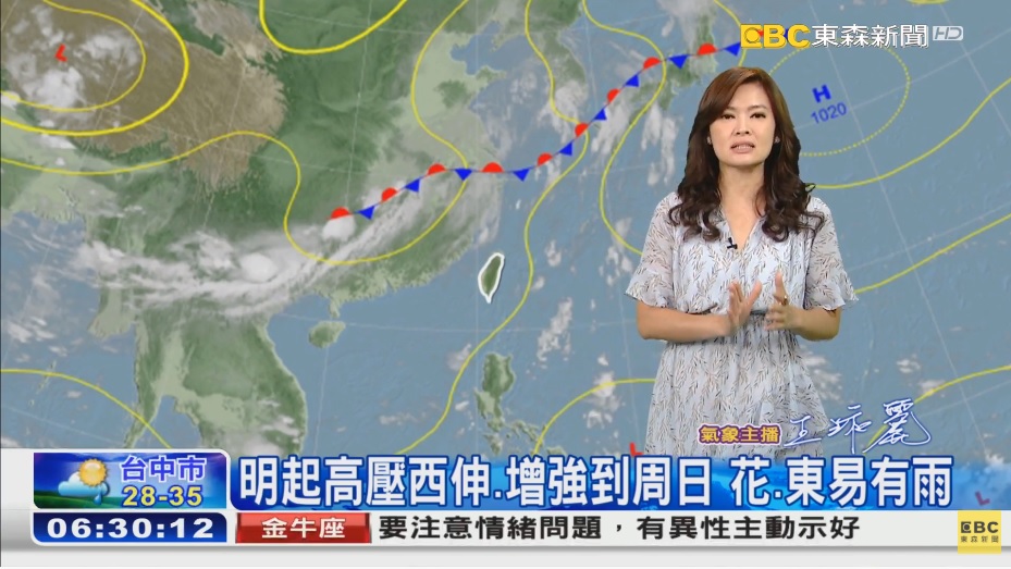 另外,東森氣象主播王淑麗表示,高壓將會向西延伸,且會增強至週日,降雨會偏山區,花蓮、台東地區降雨發生的機率也會增高。而中央氣象局也說明,週二、三風向為南風至東南風,清晨至上午中南部、花東地區有局部短暫陣雨或雷雨,而午後各地都有局部短暫雷陣雨,降雨範圍較廣,雨勢也較大;週四至下週日風向為偏東南風,東部、東南部地區有局部短暫陣雨,午後西半部地區及其他山區有局部短暫雷陣雨,山區仍要留意有局部較大雨勢發生的機率。