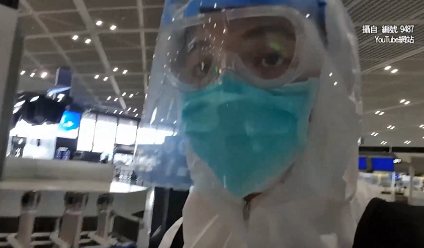 ▼民眾搭機回台,穿上防護衣,戴上面罩、護目鏡。(圖/翻攝自編號9487YT頻道/東森新聞)