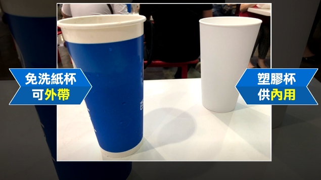 實際直擊用餐區,民眾喝完飲料,免洗紙杯要馬直接丟垃圾桶,不然就是再裝滿一杯外帶走,環保杯也有特定的回收處,讓民眾喝完自己收。在換成環保餐具後,部分消費者還是覺得不太習慣,就有民眾認為,公用餐具感覺有點髒,很奇怪。