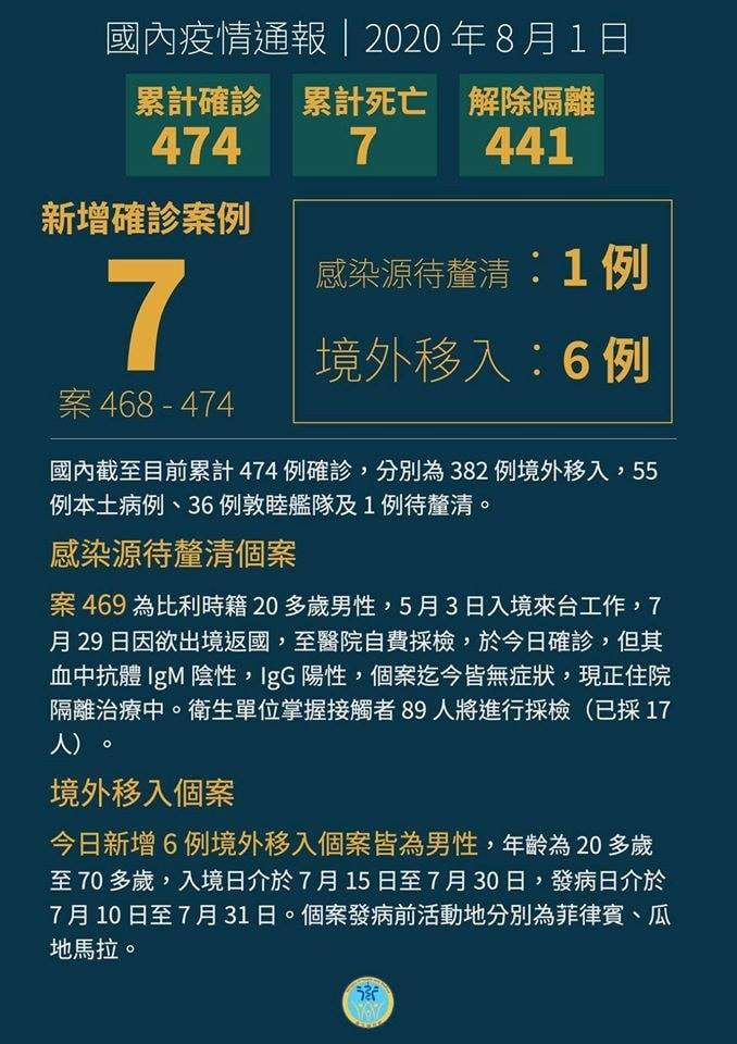 ▼我國在今日新增7例武漢肺炎確診案例,其中有6例為境外移入。(圖/翻攝自中央疫情指揮中心)