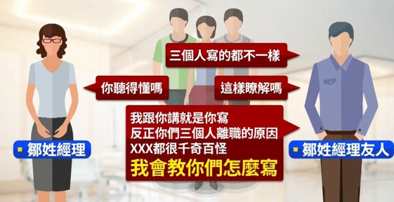▼鄒姓經理帶來的朋友,還教他們寫下不同的離職理由。(圖/東森新聞)