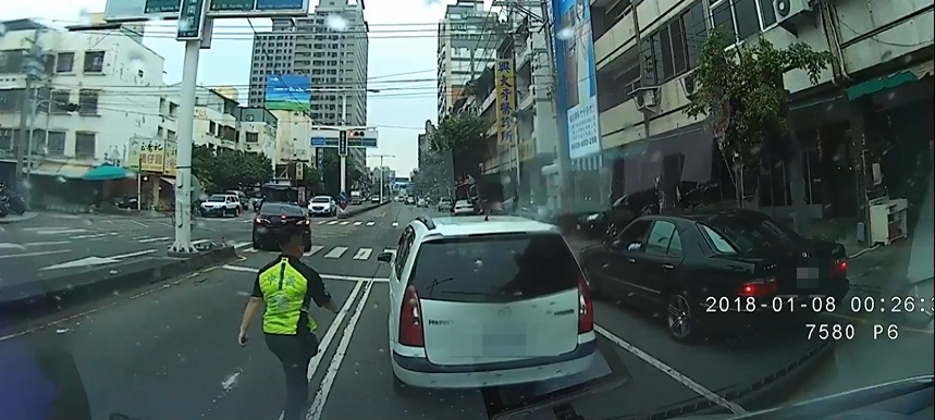 ▼前方白色休旅車聽見鳴笛仍不移動。(圖/東森新聞)