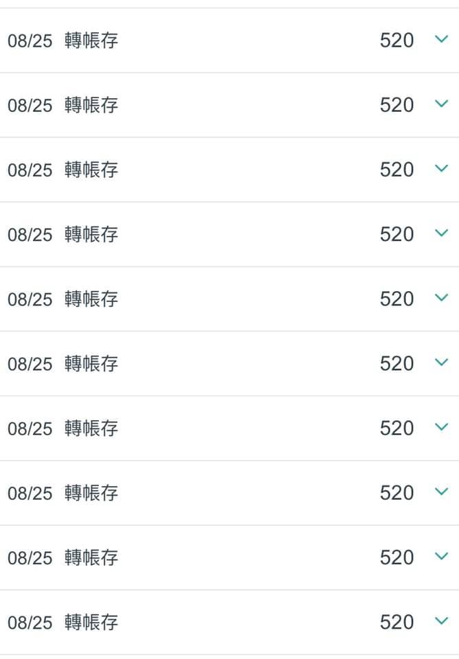 ▼男友匯入10筆520匯款。(圖/翻攝自臉書社團 爆廢公社二館)