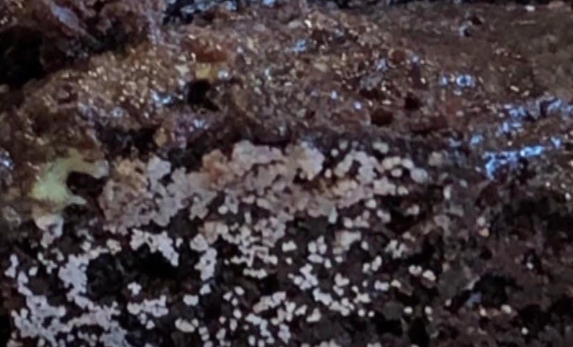 ▼巧克力蛋糕上疑似有黴菌。(圖/東森新聞)