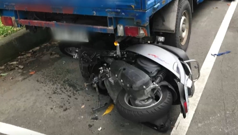 照片中機車直接插進了貨車車尾,騎士自撞,幸好人摔到一旁,保住一命,但是左肱骨骨折,左膝受傷,臉部手部全是擦挫傷,車禍後一段時間都是爸爸得扶著兒子走路,當事人陳姓騎士表示:「不能動也不能工作,家裡經濟也不太好,想幫家裡賺一點錢也沒辦法。」
