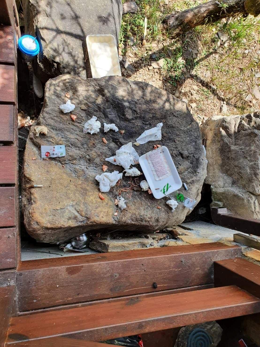 ▼院子也都是房客亂扔的衛生紙及菸蒂。(圖/翻攝自爆料公社)