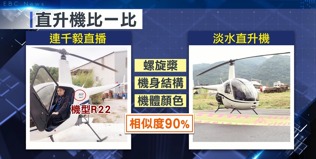 ▼連千毅曾拍賣的直升機跟在淡水被拍到的直升機,相似度非常高。(圖/東森新聞)