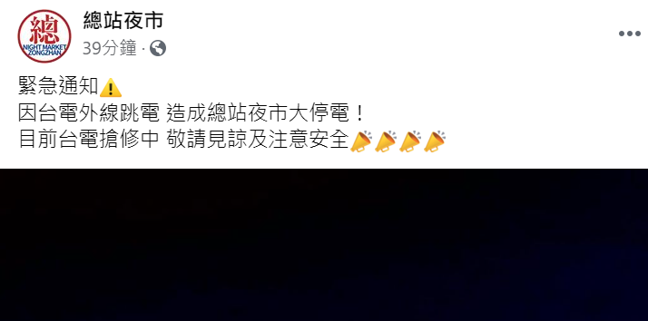 ▼總站夜市開幕第二天大跳電。(圖/翻攝自 總站夜市 臉書)