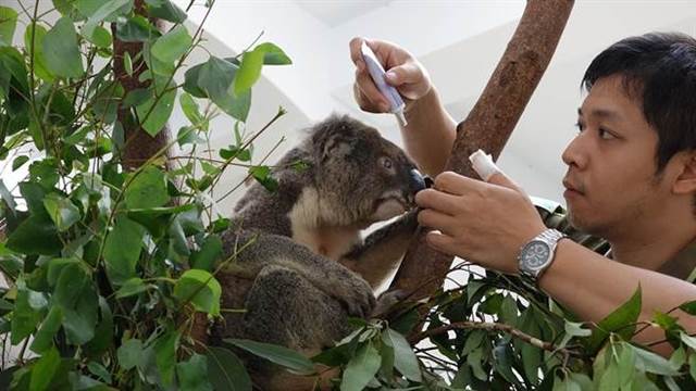 另外,保育員也點出高齡近19歲的派翠克,已堪稱「爺爺等級」,從每年的定期健康檢查發現牠患有白內障、牙齒磨損,再加上反常的睡眠模式,造成牠採食尤加利葉的時間變多,營養吸收率也不高,所以保育員在餵食代奶後,會挑選嫩葉給牠,每天點人工淚液幫牠保濕眼部,也會點眼藥水抗發炎,還會補充鐵劑,好讓牠安心養老。
