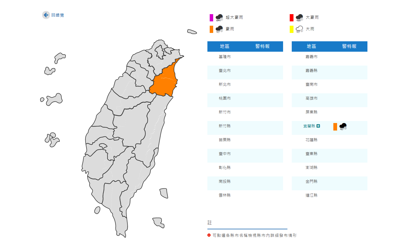 ▼宜蘭縣發布豪雨特報。(圖/翻攝自中央氣象局)