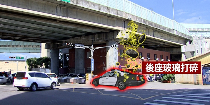 ▼今年六月石塊還曾打到巡邏車後座擋風玻璃。(圖/東森新聞)
