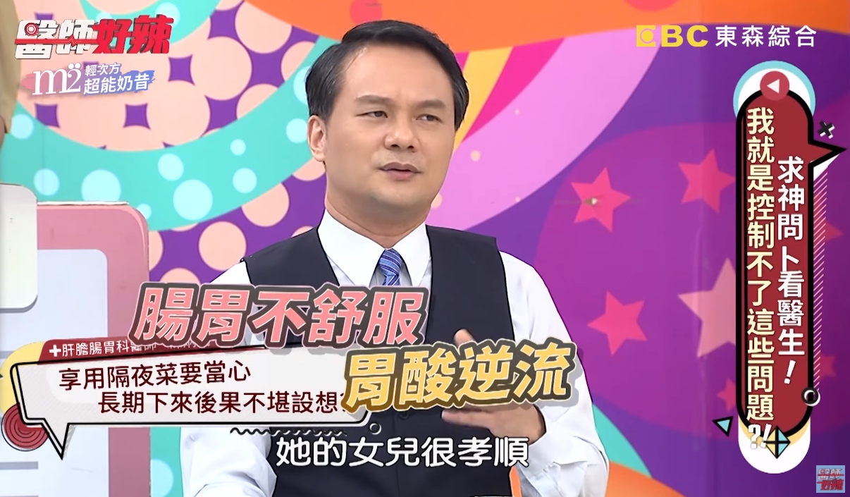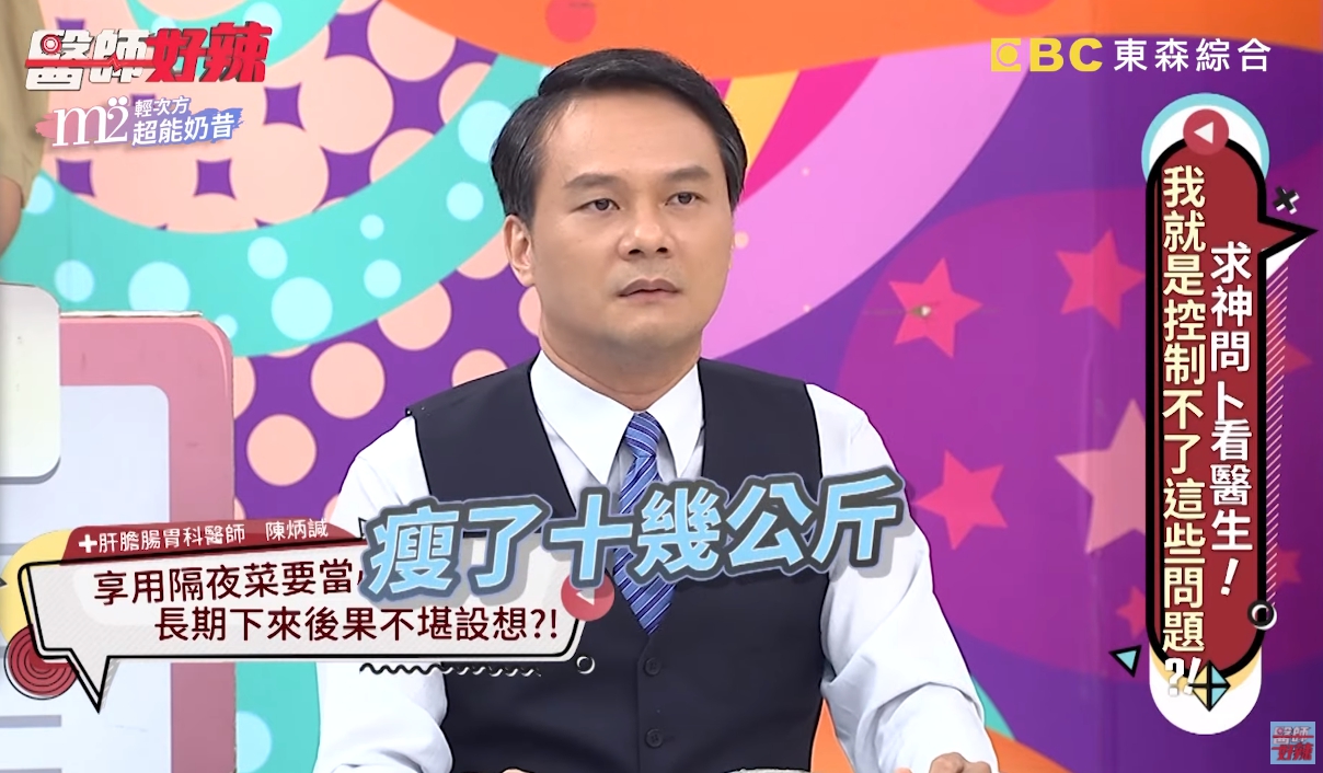 陳炳誠在《醫師好辣》中分享自身經手的案例,一名68歲的老太太時常煮很多晚餐給孫子吃,吃不完就放在桌上拿罩子罩著,隔天再自己食用,這習慣也導致老太太的腸胃開始不舒服、胃酸逆流,女兒也勸她別再吃隔夜餐,但老太太依舊堅持。