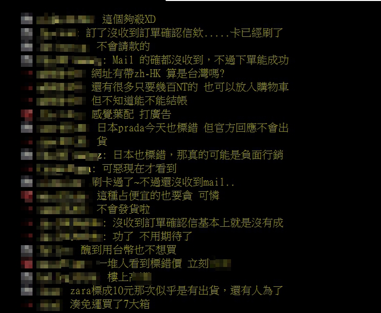 進入MIU MIU台灣官網中,商品浮標的價格是正確的,不過一點進去單項商品頁面中,裡面卻是530元的超低價格,這麼大的烏龍立刻引起網友在PTT討論,不少人表示「刷卡過了,不過沒收到mail」、「不會發貨啦」、「大家一看到標錯價立刻興奮了」。