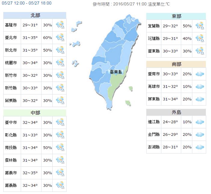 天氣和昨天差不多,但是因為暖濕空氣的影響,所以感受上會比較悶熱。但是仍要注意午後熱對流旺盛,有降陣雨的機會。