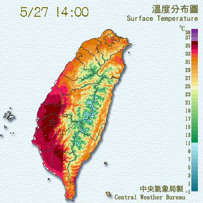 今天白天氣溫偏高,在13時45分的時候,嘉義更飆出37.2度的高溫,創下今年全台最高溫紀錄,氣象局也發布即時天氣訊息「臺東地區易有焚風發生,目前大武高溫已達36度,並有37度高溫發生的機率」。