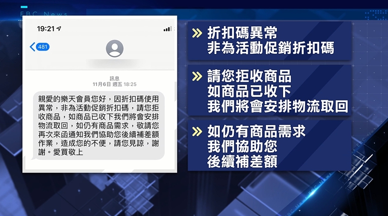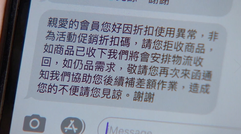 簡訊上寫著折扣碼異常,非為活動促銷折扣碼。