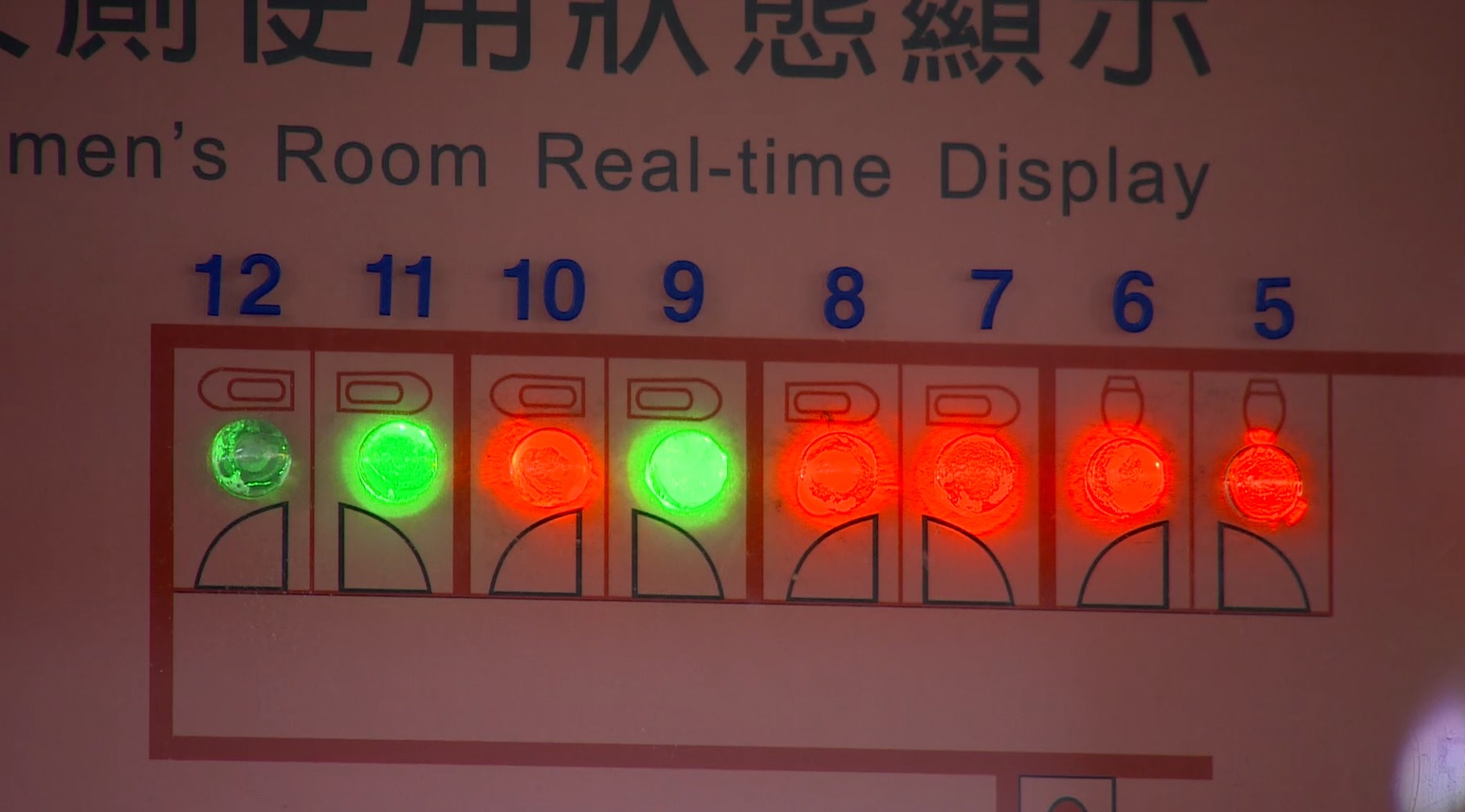 ▼不少北捷廁所門口有燈號,顯示哪些廁間有民眾正在使用。(圖/東森新聞)
