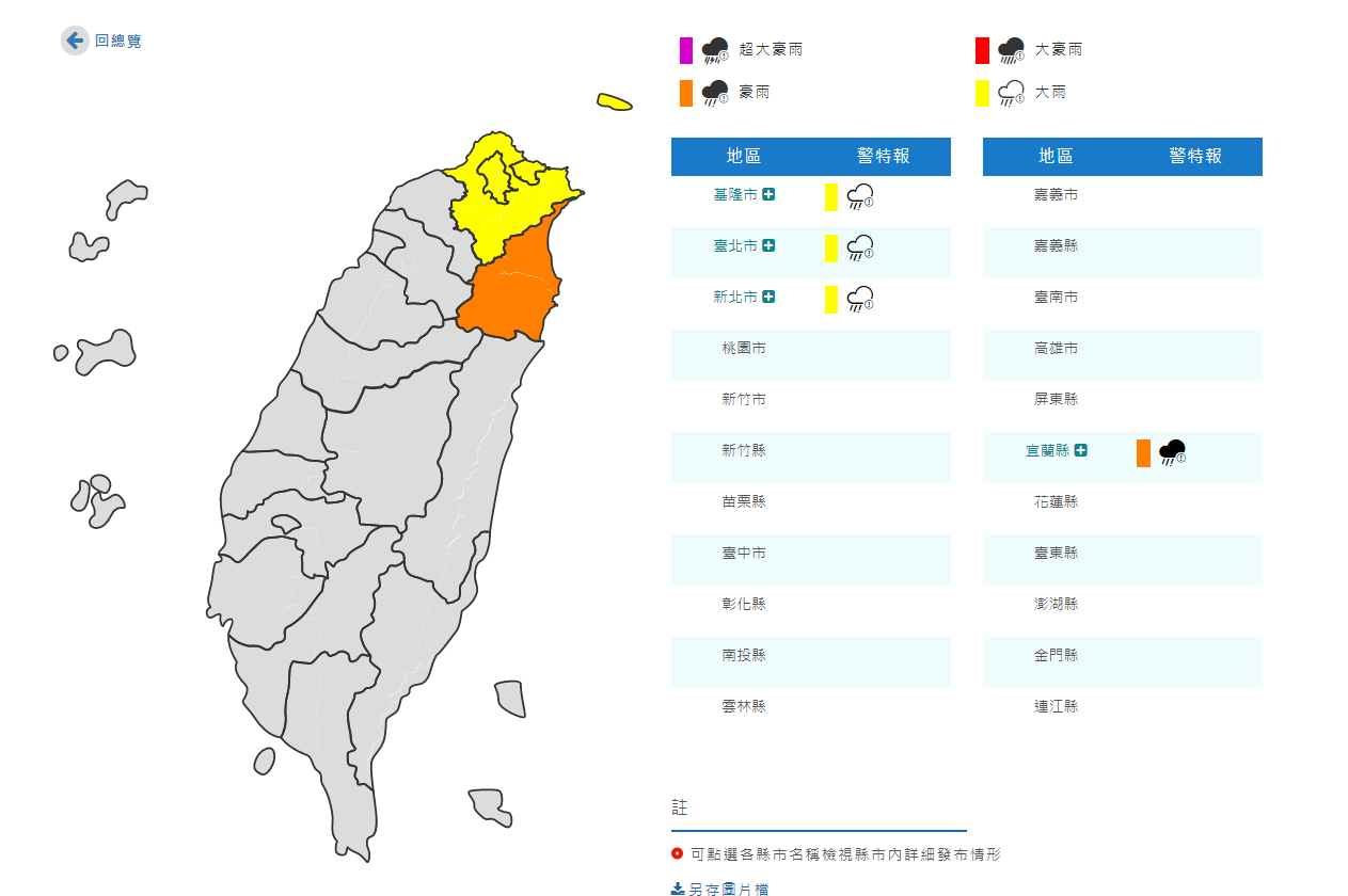 ▼北北基和宜蘭發出豪、大雨特報。(圖/翻攝自中央氣象局)