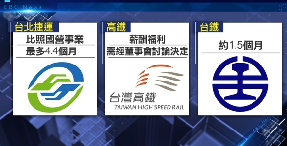 北捷表示,員工會輪調,但屬於同一事業體,不能把虧損加諸到同仁身上。而北捷比照國營事業,像是中油、台電、台水和台糖考成獎金甲等,最高領2個月,績效獎金則是公司達成獲利目標,最高領2.4個月,合計4.4個月獎金,也就是部分北捷員工能領最多4.4個月,而台灣高鐵員工薪酬福利,需經董事會討論決定,台鐵大約1.5個月。