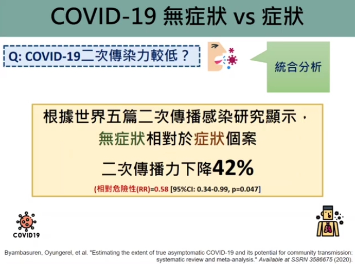 ▼陳秀熙也說,無症狀相比症狀個案,二次傳播率下降42%。(圖/翻攝自新冠肺炎科學防疫園地 youtube)