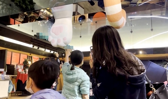 商場設計團隊操刀設計,讓民眾逛個街遇見貓,而且一次兩隻巨貓,興奮之餘 拍照也得留意不要太過投入,自己開心別人困擾。