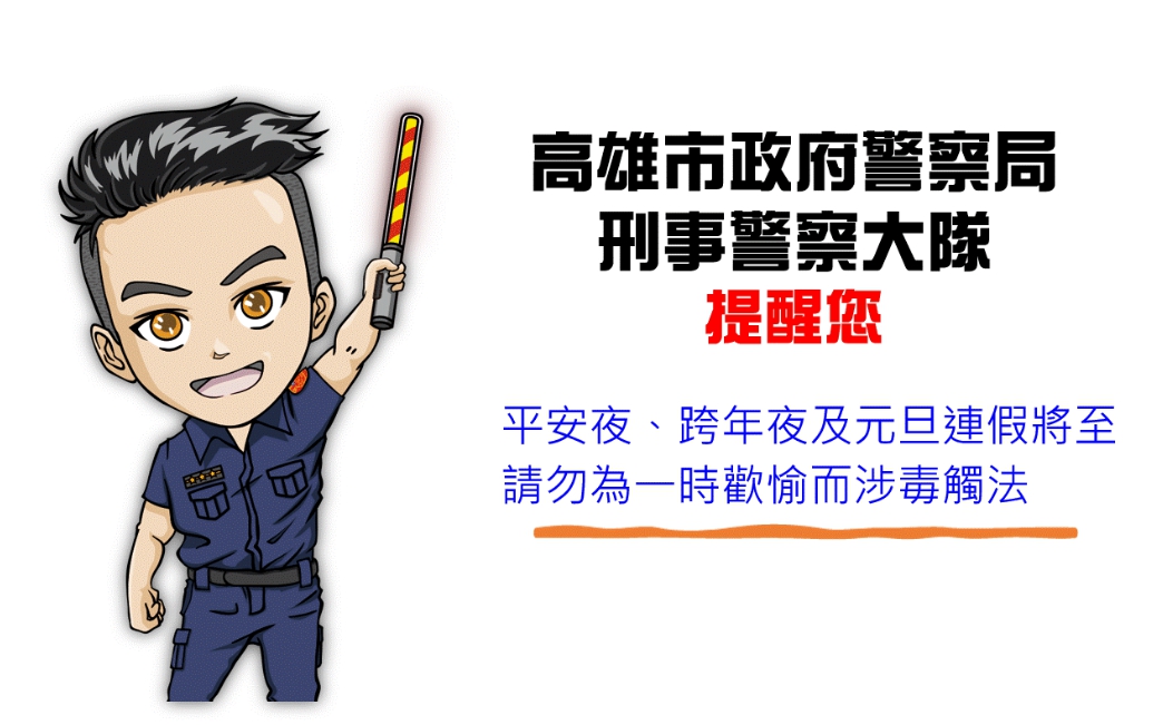 ▼平安夜、跨年夜及元旦連假將至,f請勿一時歡愉而涉毒觸法。(圖/高雄市政府警察局)