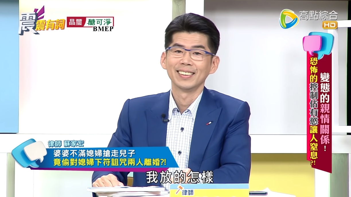 而她的婆婆則直接表示「我放的,怎樣?」說明她就是看媳婦不順眼,認為對方是來搶走她兒子的,讓人妻難過的找丈夫哭訴,不過老公卻不相信,認為媽媽對他們很好,不可能做這種事,夫妻倆最後鬧上法院,以離婚收場。該起事件也讓蘇家宏相當感嘆,直呼如果男生願意站出來調解就好了。