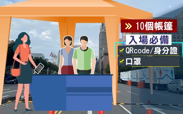 轉個鏡頭看到台南晚會舞台,外圍拉起封鎖線,舞台下方還有拒馬,在當天進行人潮分流,但現場竟然有民眾早早就來卡位搭起帳篷。