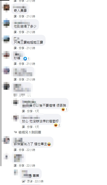 不少網友看到畫面後紛紛留言表示「笑死」、「喝ㄎㄧㄤ了吧」、「會吵到離婚吧」、「老公一定覺得超丟臉」、「根本是天兵」,更有人開玩笑表示「想知道老婆還活著嗎」、「應該是那位太太想整先生很久了」,也有人指出,怎麼可能車主不知道那邊不能停車,應該是沒位子才亂停,認為她行為相當自私。