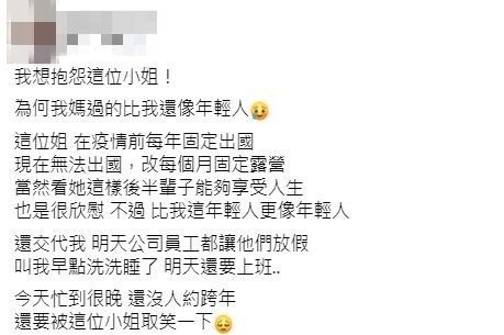 ▼原PO上網抱怨媽媽過得太像年輕人。(圖/翻攝自臉書「爆怨公社」)
