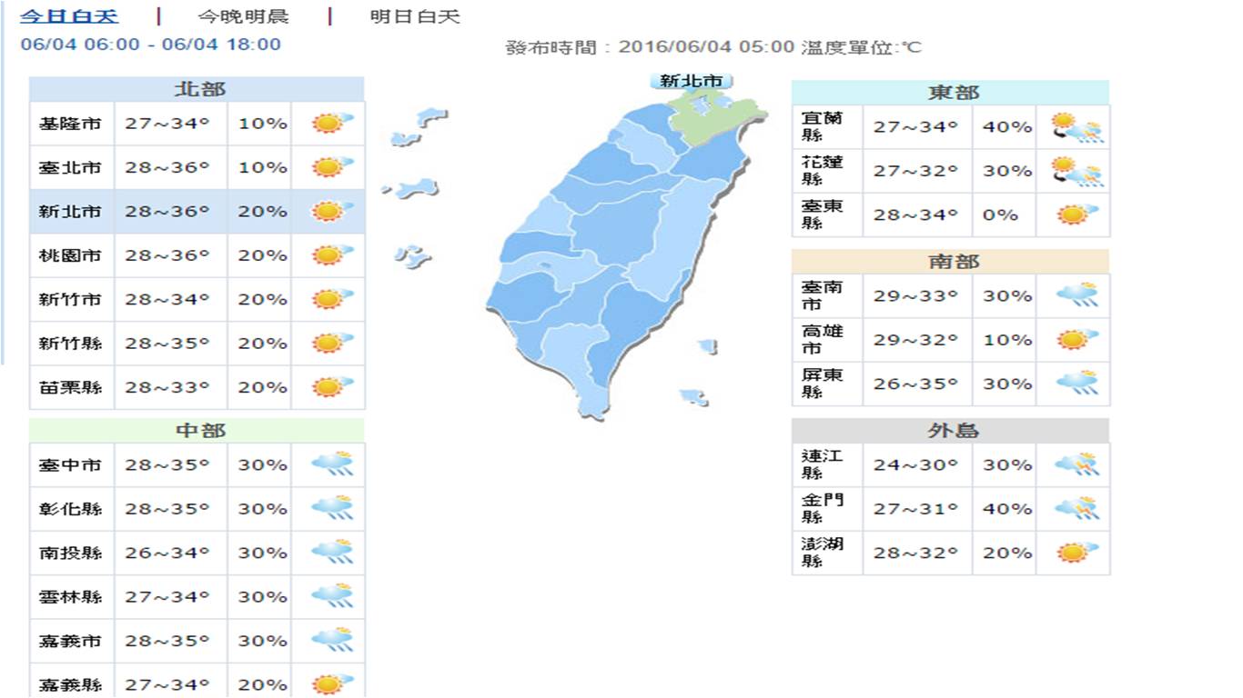 ●全台各地今(4)日溫度預測 (圖/中央氣象局)