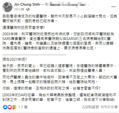 ▼台大醫師施景中特地在臉書發文(圖/截自施景中臉書)