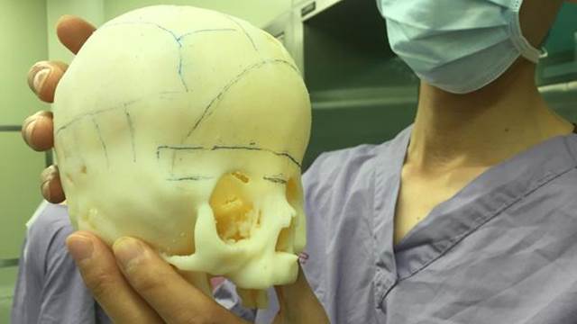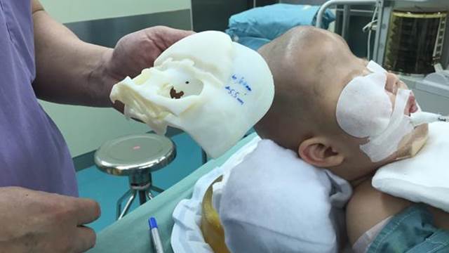 3D列印的技術幫他做了一個頭殼以精確治療。