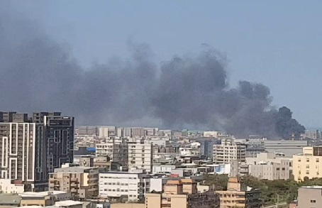 ▲▼桃機附近濃煙狂竄。(圖/東森新聞)