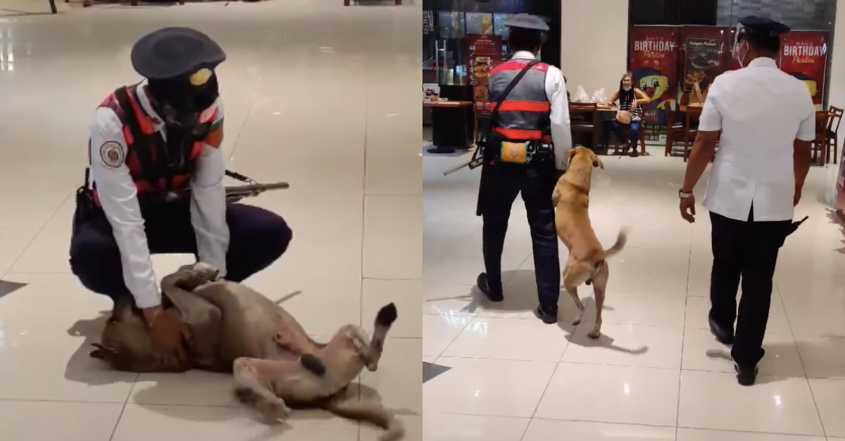 ▼保全溫柔地將狗狗「驅離」賣場。(圖/翻攝自JAN MART CALIMPONG臉書)
