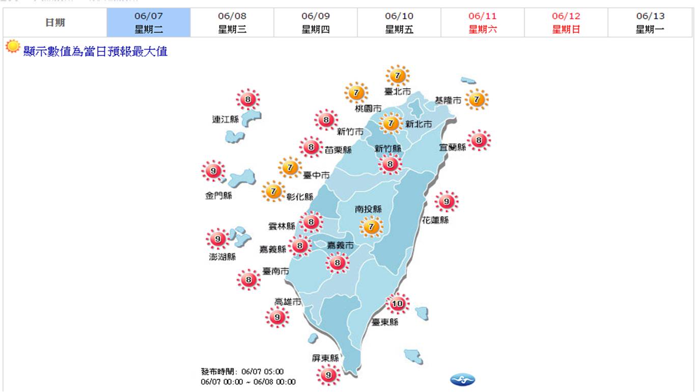 ●全台紫外線預測圖(圖/中央氣象局)