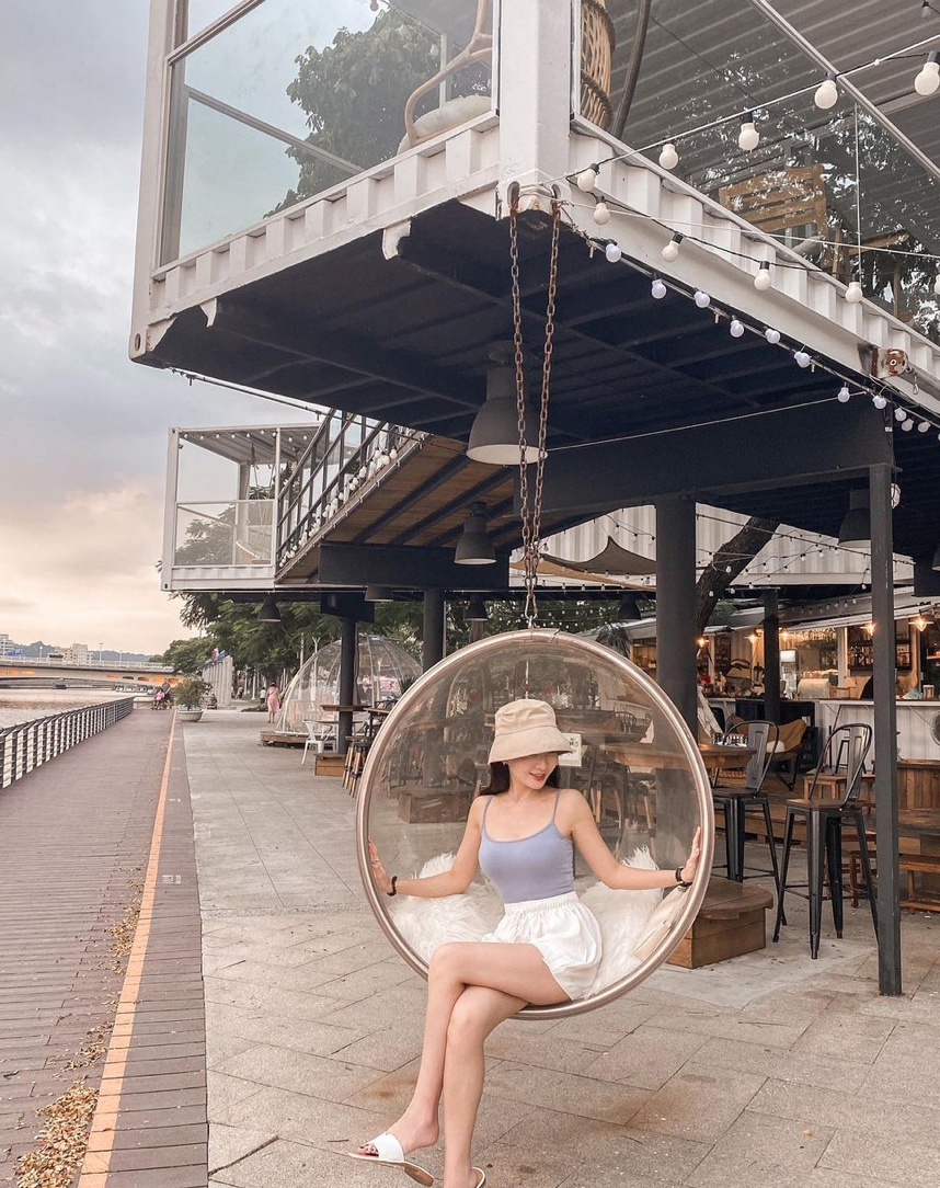 來到愛河可不要只在河邊拍照,座落在河岸邊的白色戀人貨櫃屋咖啡館,除了能欣賞唯美的河岸風光,還可以坐在半圓型鞦韆上與夢幻的白色玻璃貨櫃拍照,咖啡館內的造景也佈置得相當用心,隨手一拍就是一張雜誌封面。