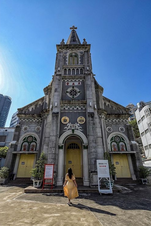 而坐落於愛河旁的玫瑰教堂,外表看起來氣質高貴、典雅,整體建築造型仿歐洲歌德式的教堂風格,有聳立的尖塔和玫瑰花窗,而內裡則如同它的名字一樣粉嫩,粉紅色的燈光,配上華麗又莊嚴的雕飾,簡直和電影中的場景一模一樣,隨便拍都像是一部劇的劇照。