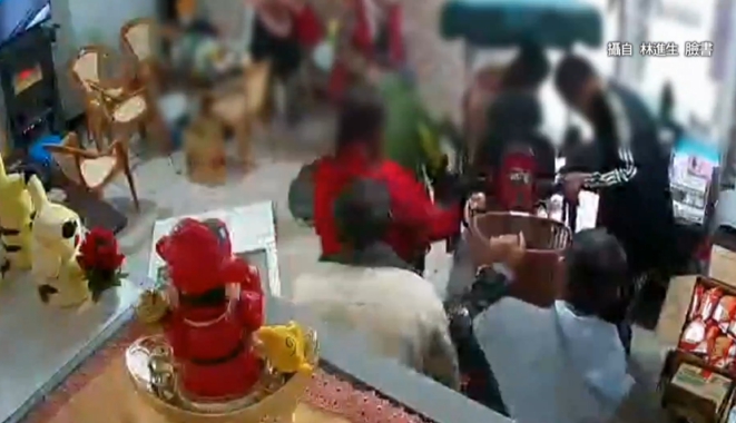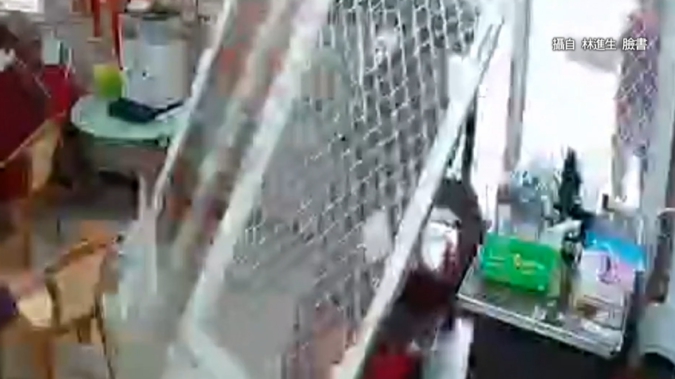 就在店內婦人指揮,6人合力之下,花了好大力氣才終於把電動車移到店外,還有人再抓起門板,把門重新組裝起來。卡啦OK店業者說:「這兩個門衝進去,然後剛好卡在冰箱裡面,這冰箱都還好幾個洞,剛好那時候人都沒在這裡,在那邊開同學會。」