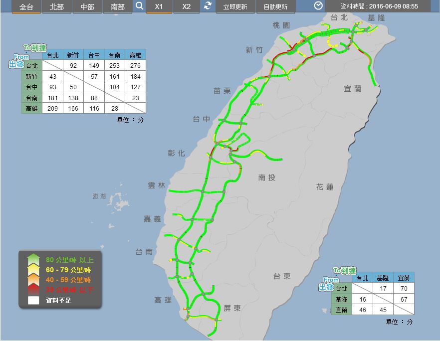 高公局同時預估,今天上午9時開上國道將陸續出現壅塞現象,台北到高雄恐要5個半小時才能到。如果是傍晚才上國道,北高需要3個半小時車程。建議民眾可以儘量避開塞車時段,北高長途者走國3號,中部旅客走國1號,短途民眾則改走地方道路。