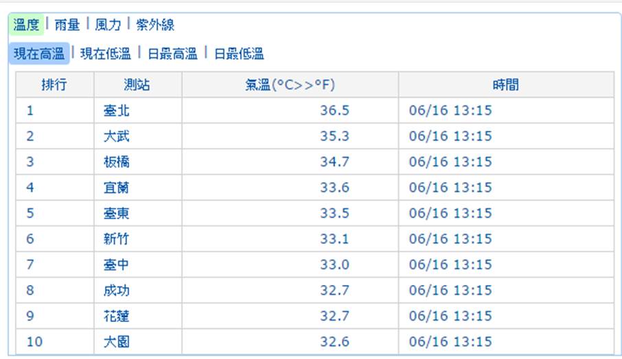 台北氣溫已經飆到37.4度,台東大武也因焚風出現35.4度