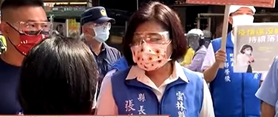 雲林昨天新增一起確診,加上有兩名台中跟新北的確診案例到過雲林,所以雲林縣強制開罰沒有戴口罩,一律開罰三千到一萬五,不過縣長張麗善視察時,一名阿伯想要抽菸拉下口罩當場被發現,在大家勸導下他才把口罩戴好。