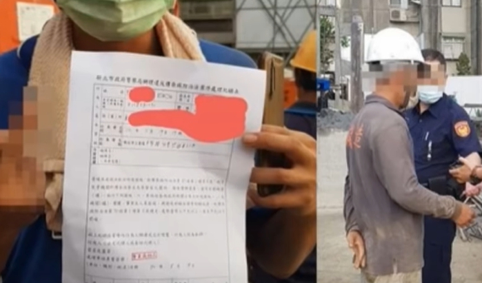 ▼日前有一名工人因抽菸脫下口罩挨罰。(圖/翻攝自爆料公社)