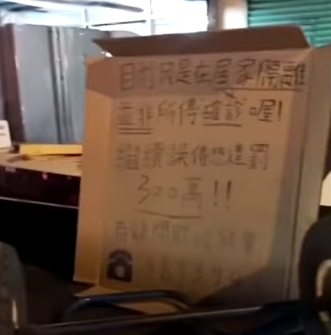 門口放了公告,電器行鐵門深鎖,已經暫停營業4天了,老闆在家自主隔離,沒想到外面謠言傳得滿天飛,手機群組內到處轉傳某某電器行老闆確診,要大家不要亂跑,就是因為這封訊息,害的電器行一家人深受其擾。投訴人黃小姐:「已經確診了還叫我們進去,客人把爸爸帶上樓之後,爸爸有看到確診者,(確診者)他就很緊張,趕快把口罩戴起來。」