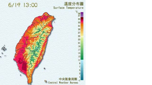 另外,今、明2天因為受到太平洋高壓的影響,全台及外離島地區都是多雲到晴的天氣,白天高溫達36度,午後就會有雷陣雨發生的機率,讓台灣整個變成一顆紅通通的番薯,所以請民眾除了要攜帶雨具以備不時之需之外,也要隨時補充水分以免中暑。